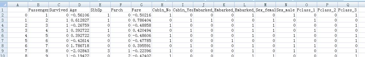 此时数据都为数值型,但一些值的变化范围太大,如Fare,Age等,需要对其进行规范化处理,我采用的是零—均值规范化。