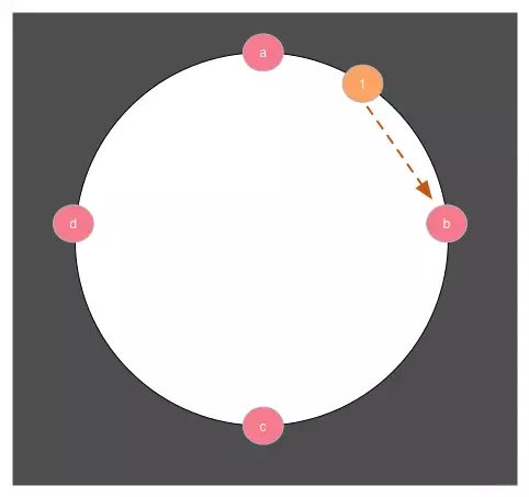 还是假如我们有a,b,c,d四个节点(感觉整篇文章都在做这个假如…),把他们通过某种规则转成整数,分别为0,3,6,9.所以按照时钟分布如下图