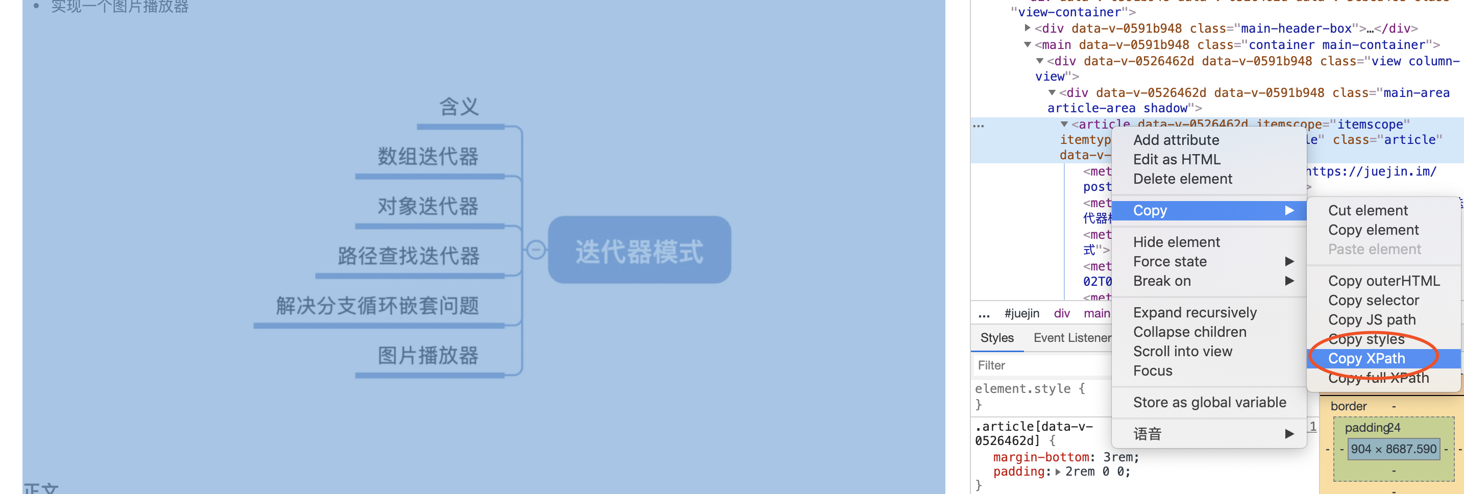 3.js实现获取元素的Xpath路径