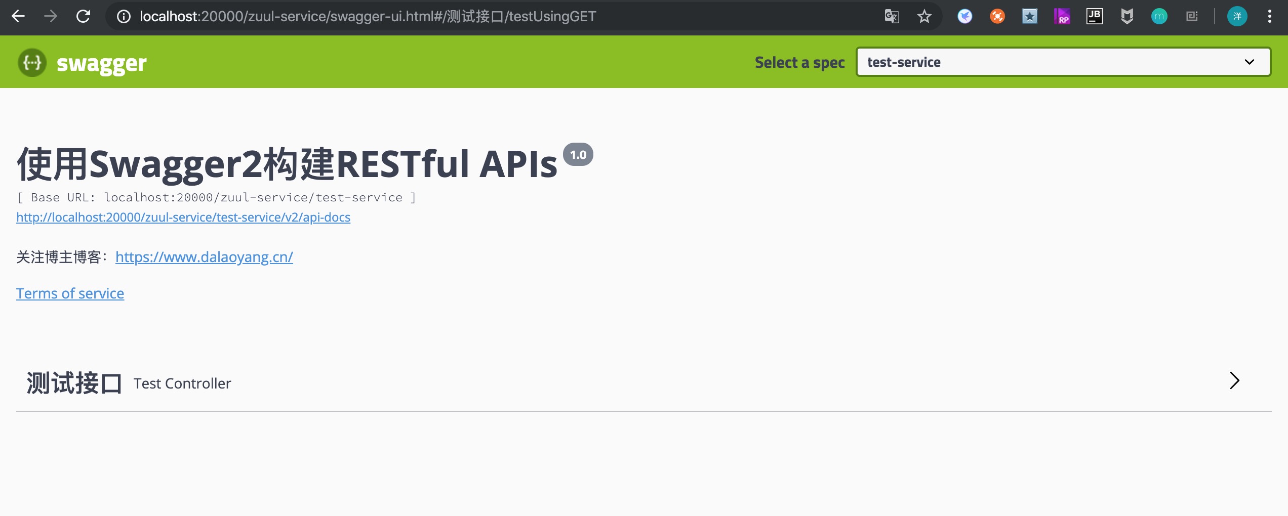 启动服务,访问Zuul的swagger文档,还是可以同样的访问,但是测试一下在swagger请求一下下游服务api,如下