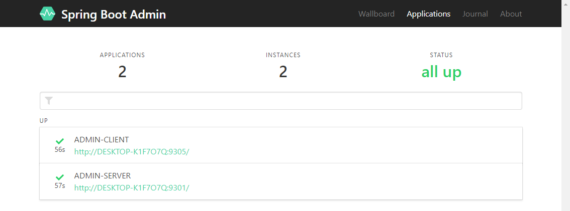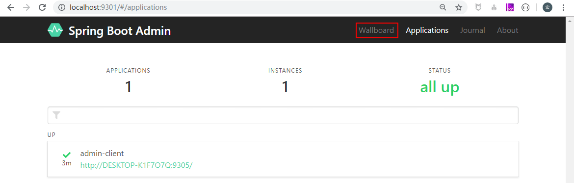 - 访问如下地址打开Spring Boot Admin的主页:http://localhost:9301