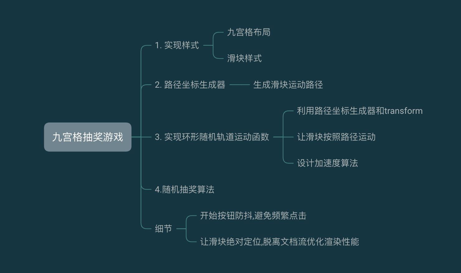 这样就能实现我们的滑块按照九宫格边框运动的动画了,当然以上函数只是基本的动画, 还没有实现在随机位置停止, 以及滑块的加速度运动,这块需要一定的技巧和js基础知识比如闭包.