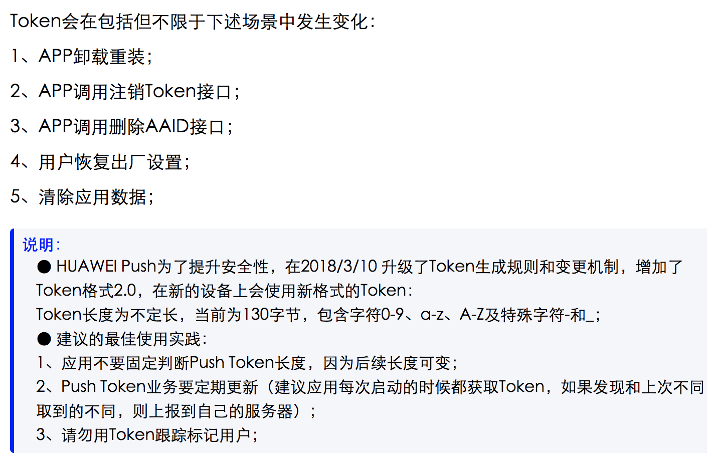 Push Token 在每台设备每个应用都是唯一存在的,但也并非一直不变,再如下情况下可能会变更,所以小菜建议每次使用最新的 Token 进行处理;