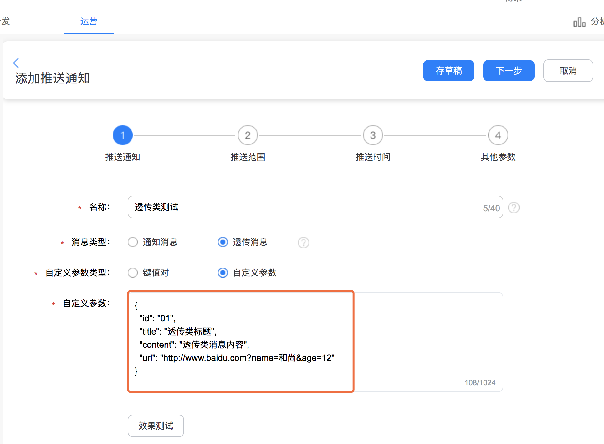 - 将 params 设置为一个 json 格式体,只解析当前一个参数,获取 json 之后根据业务逻辑进行处理;这样就可以实现和 透传类消息 相同的点击事件类;
