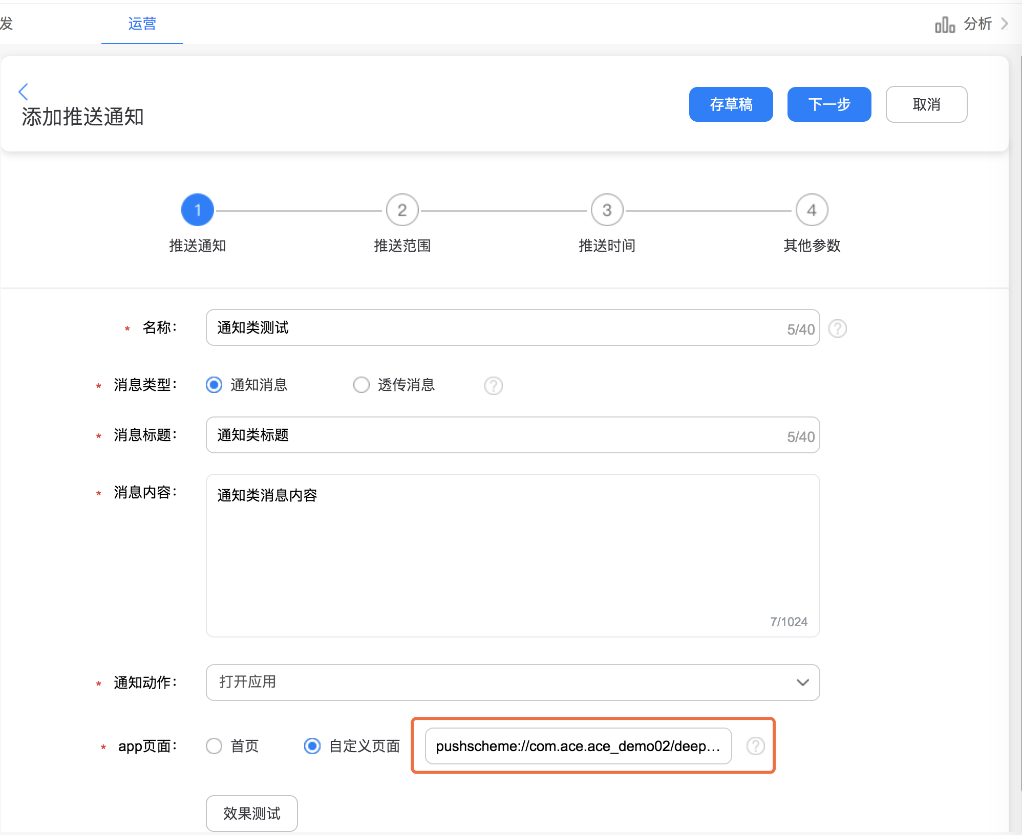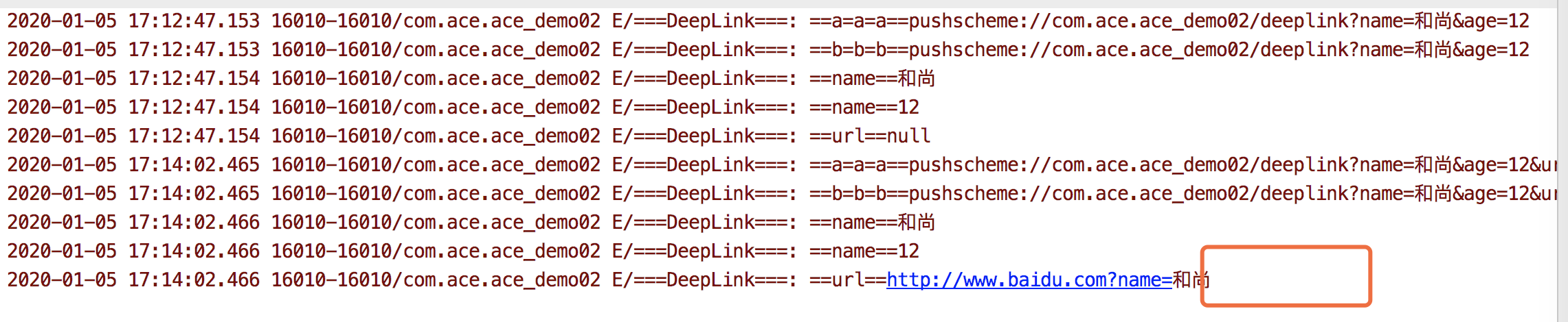 pushscheme://com.ace.ace_demo02/deeplink?name=和尚&age=12&url=http://www.baidu.com?name=和尚&age=12