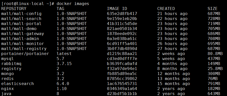 一共8个应用服务需要打包成Docker镜像,具体如何打包可以参考使用Maven插件构建Docker镜像 。