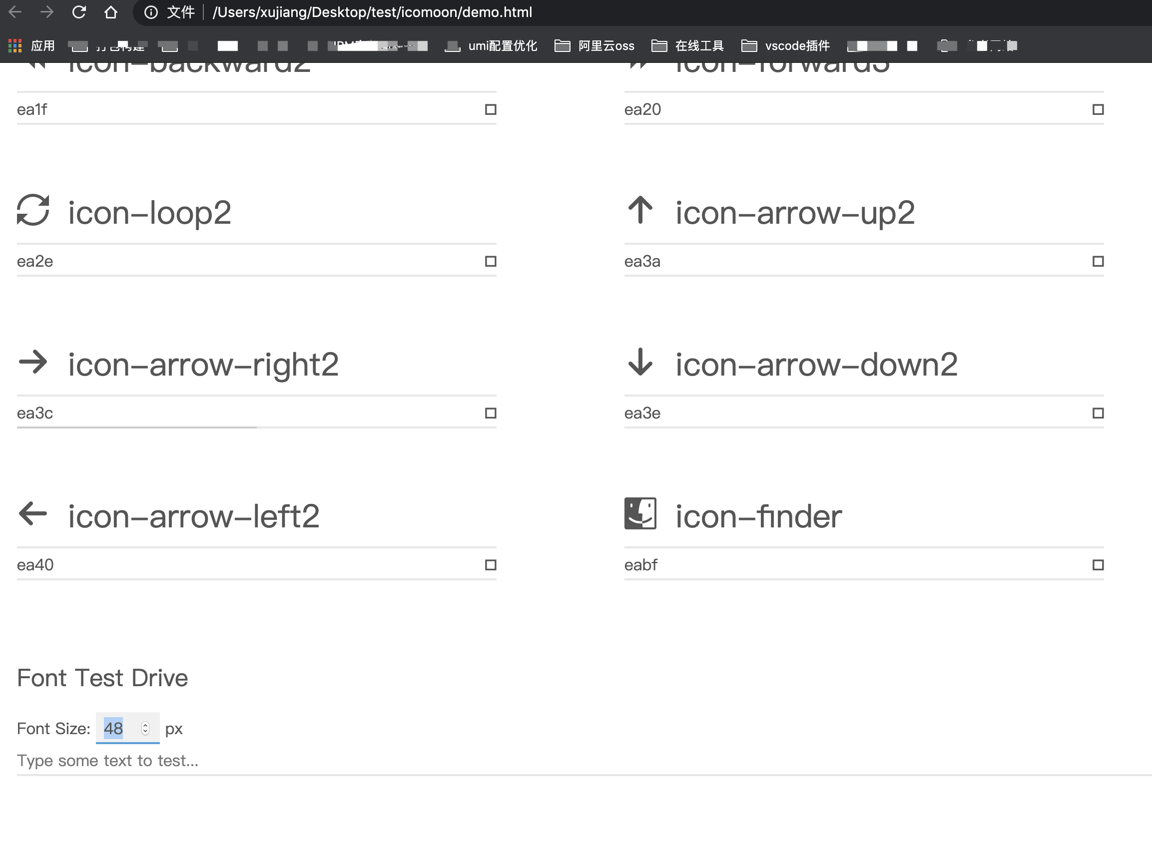 我们将下载icomoon图标文件后,会有一个html的demo文件,里面有具体的使用方法和离线编辑功能,如下: