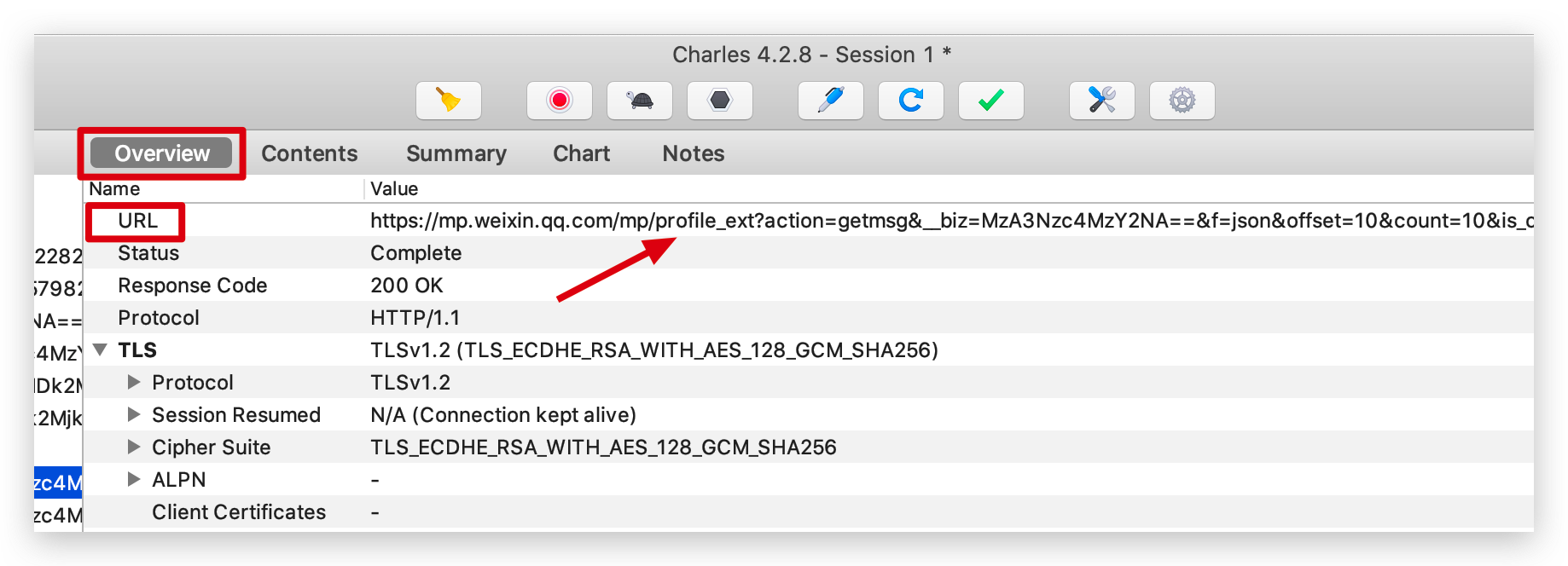 这些都是请求链接后的返回,请求链接 url 我们可以在 Overview 中查看。