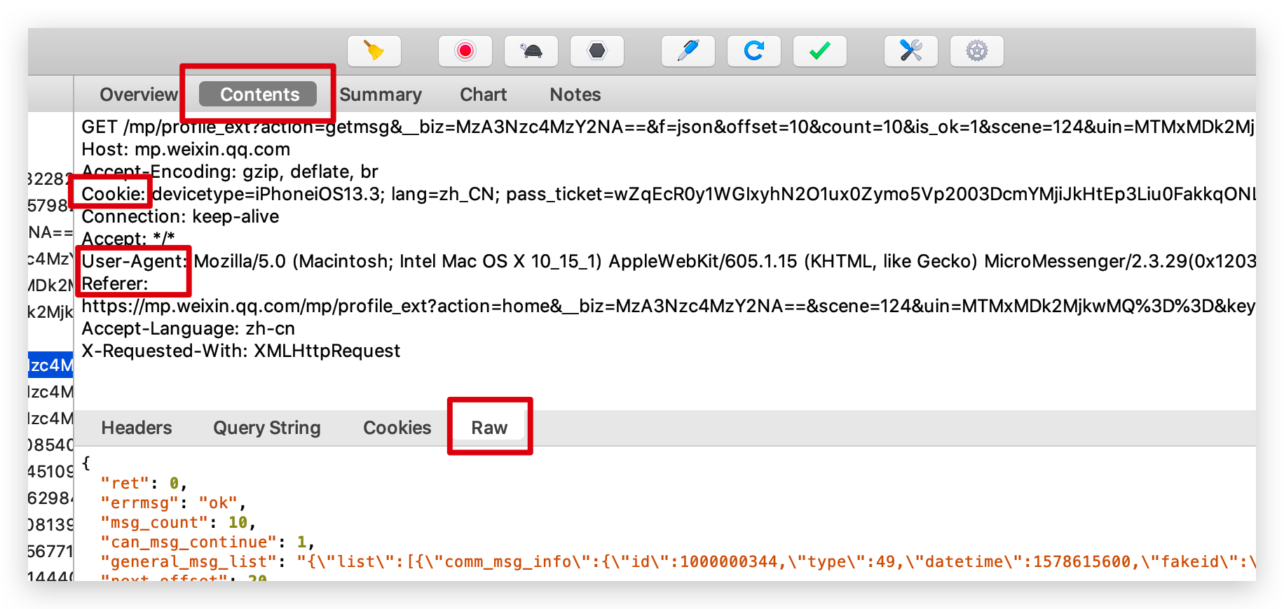 我们需要通过抓包提取公众号文章的请求的 URL,参考之前写过的一篇抓包的文章 Python爬虫APP前的准备,pk哥这次直接抓取 PC 端微信的公众号文章列表信息,更简单。