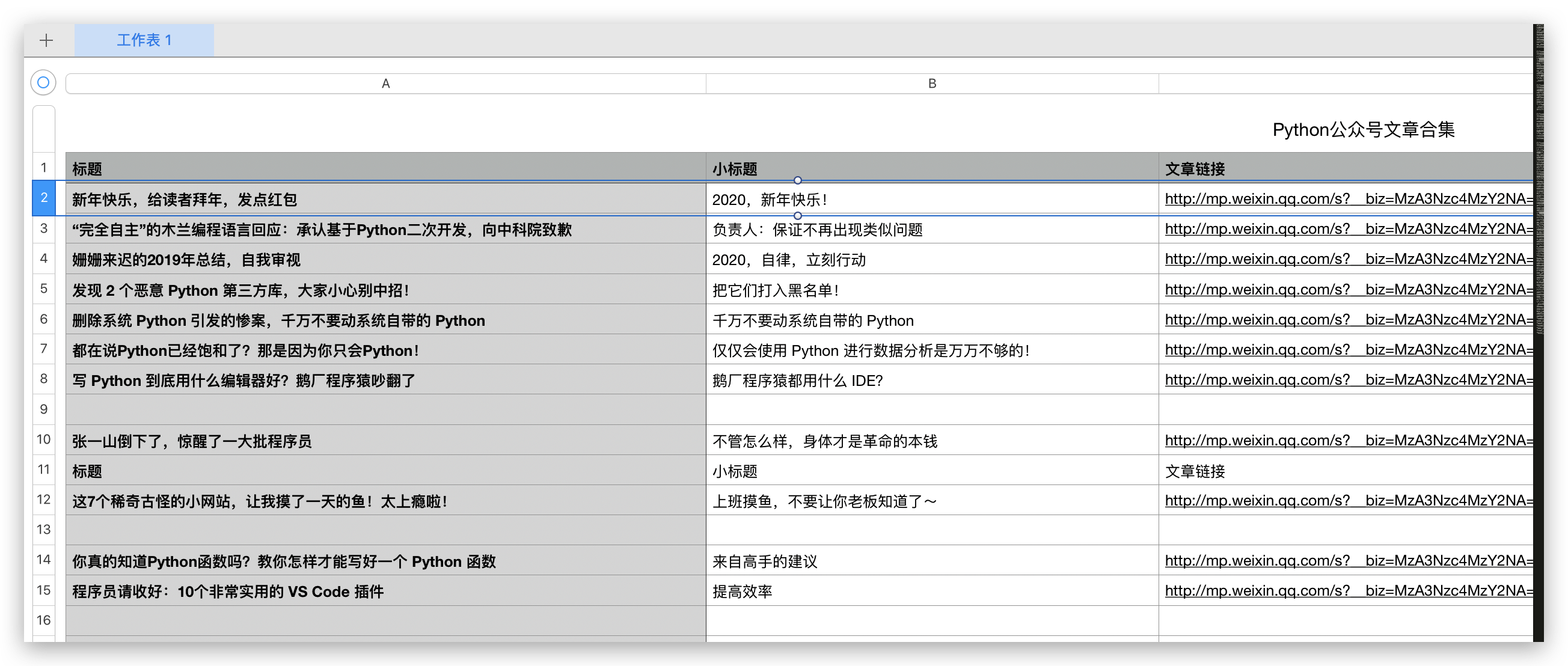 with open('Python公众号文章合集1.csv', 'a', newline='', encoding='utf-8') as f: