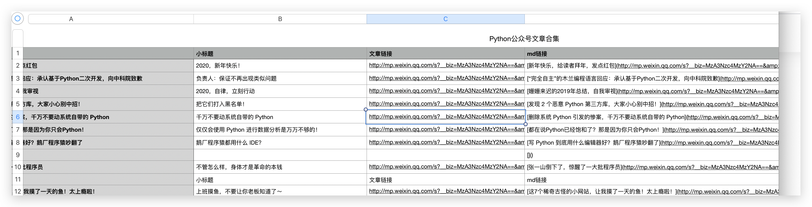 pk哥作为一个 Pythoner,当然不能这么低效,我们用爬虫把文章的标题和链接等信息提取出来。
