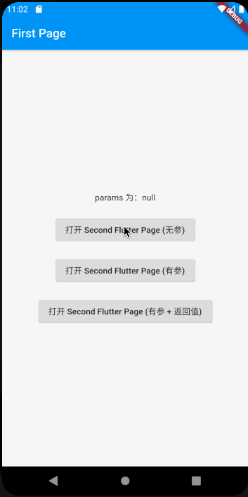 child: Text('打开 Second Flutter Page (有参 + 返回值)'),