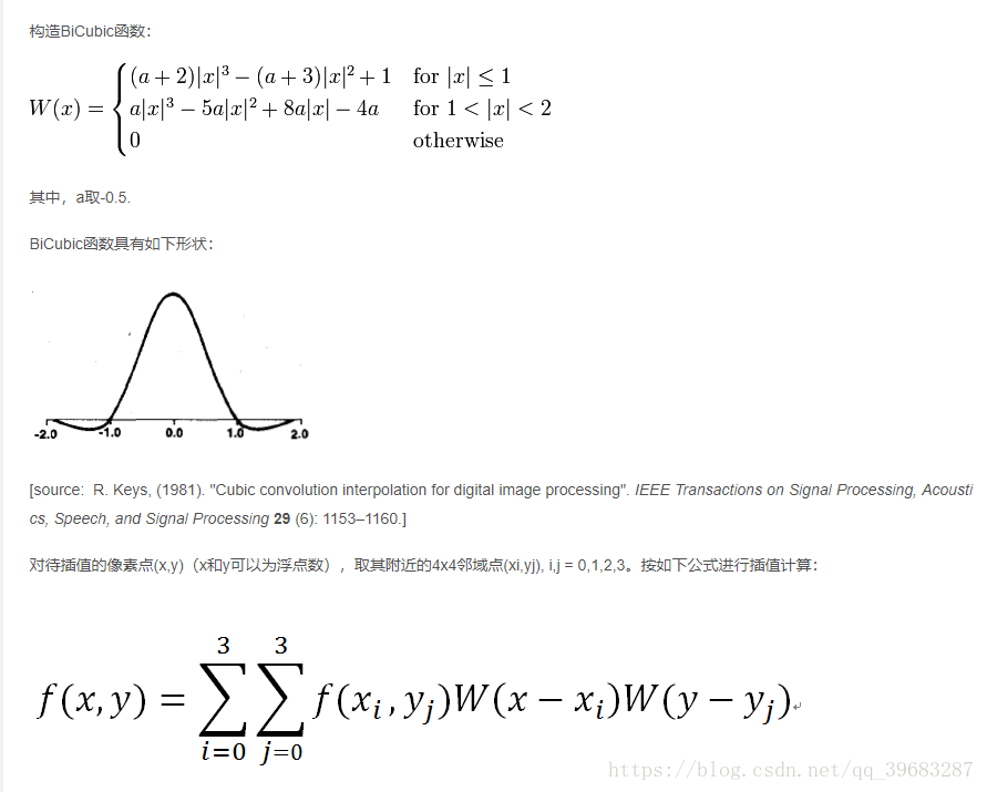 双三次插值考虑的是周围16个像素的像素值,其权重因子的计算比较复杂。常用BiCubic插值原理。