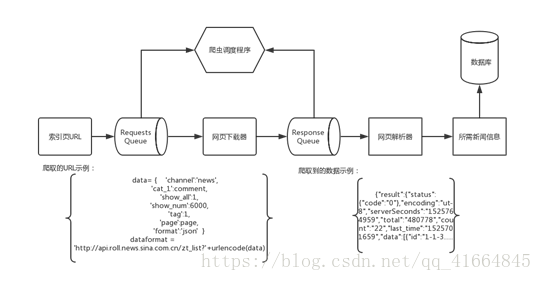 1.使用python自带的urllib库,对新浪新闻发送http请求,得到API的内的数据,实则是一串json格式封装的新闻数据,包含新闻标题,新闻发布时间,新闻链接,新闻评论人数,新闻来源等信息。
