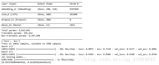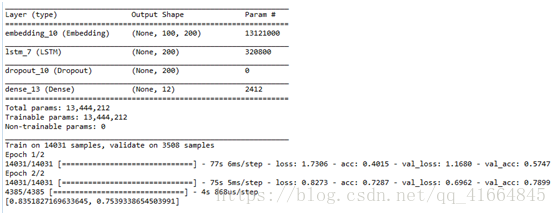 LSTM是深度学习算法中相对比较适合文本分类的一个模型,这里以同样的方法通过keras搭建LSTM网络。