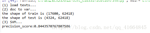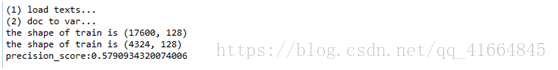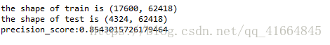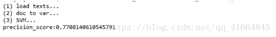 print ('precision_score:' + str(float(num) / len(preds)))SVM