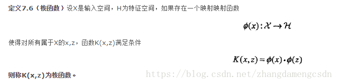 核技巧的想法是,在学习与预测中只定义核函数K(x,z),而不显式地定义映射函数。对于给定的核K(x,z),特征空间x和映射函数的取法并不唯一,可以取不同的特征空间,即便是在同一特征空间里也可以取不同的映射。
