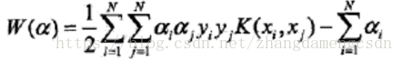 对偶问题的目标函数中,内积(xi*xj)用核函数K(xi, xj)来代替