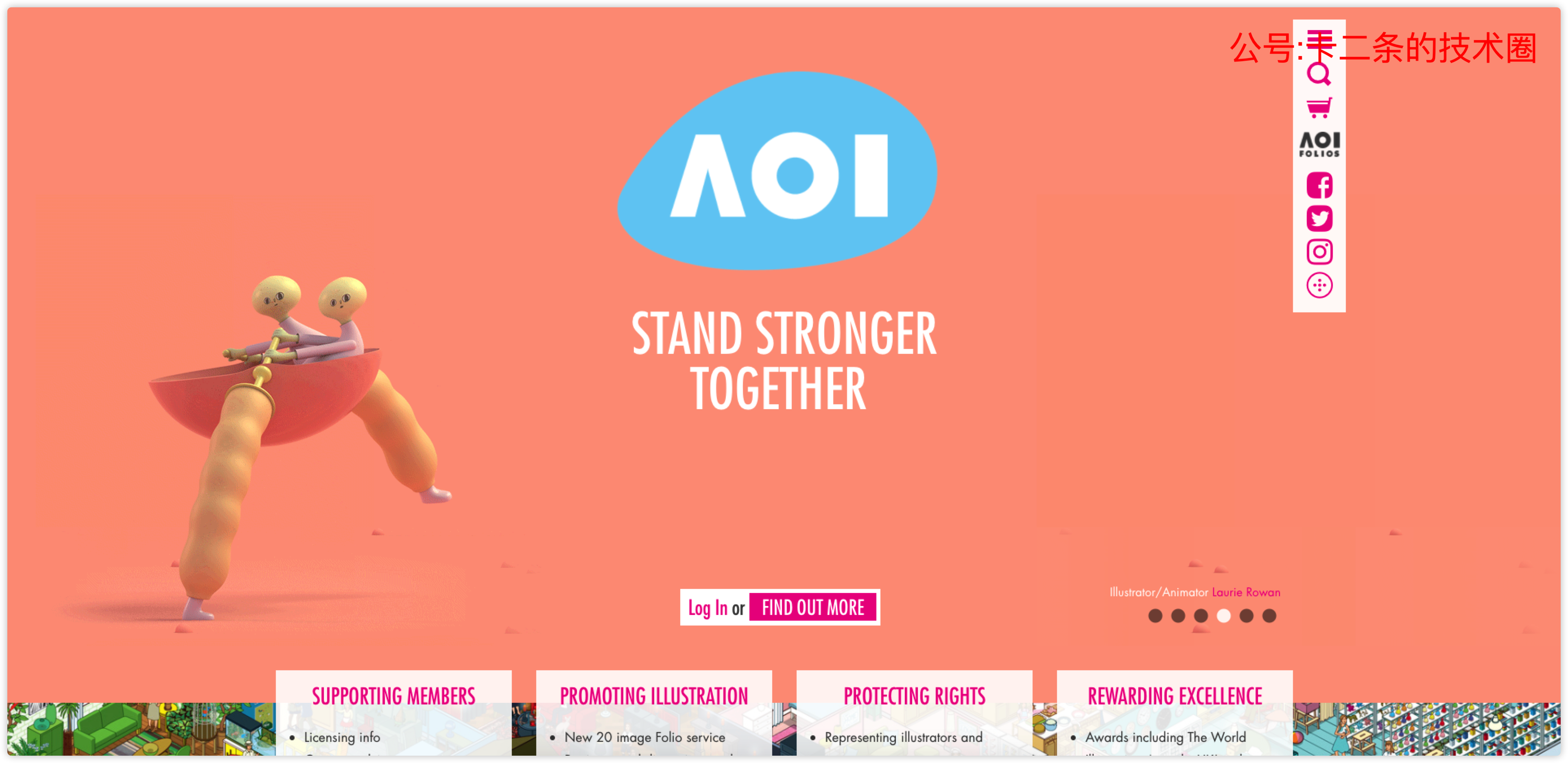 网站简介:世界插画奖(The Association of Illustrators ,AOI)是一个非营利组织,由英国插画协会举办;自1937年起一直致力提升插画领域的创作质量,该奖项也是世界上最重要的插画比赛之一,每年评奖一次,是插画界的盛事。