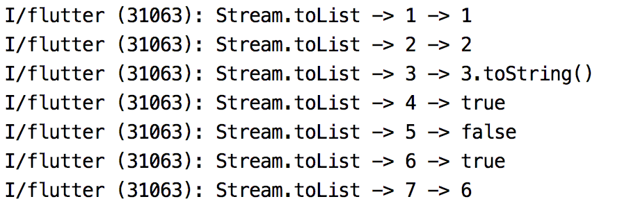 print('Stream.toList -> ${i + 1} -> ${list[i]}');