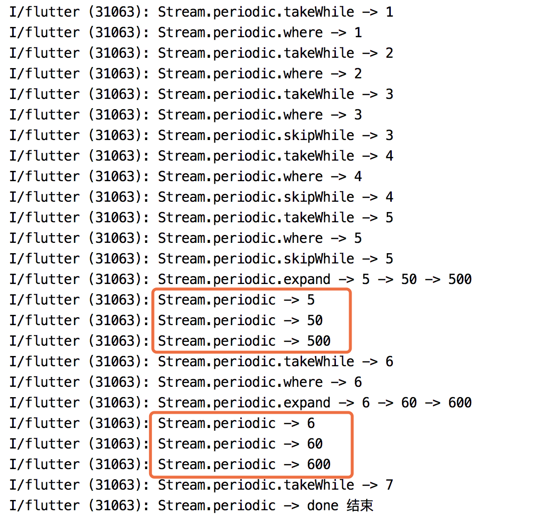 print('Stream.periodic.expand -> $element -> ${element * 10} -> ${element * 100}');