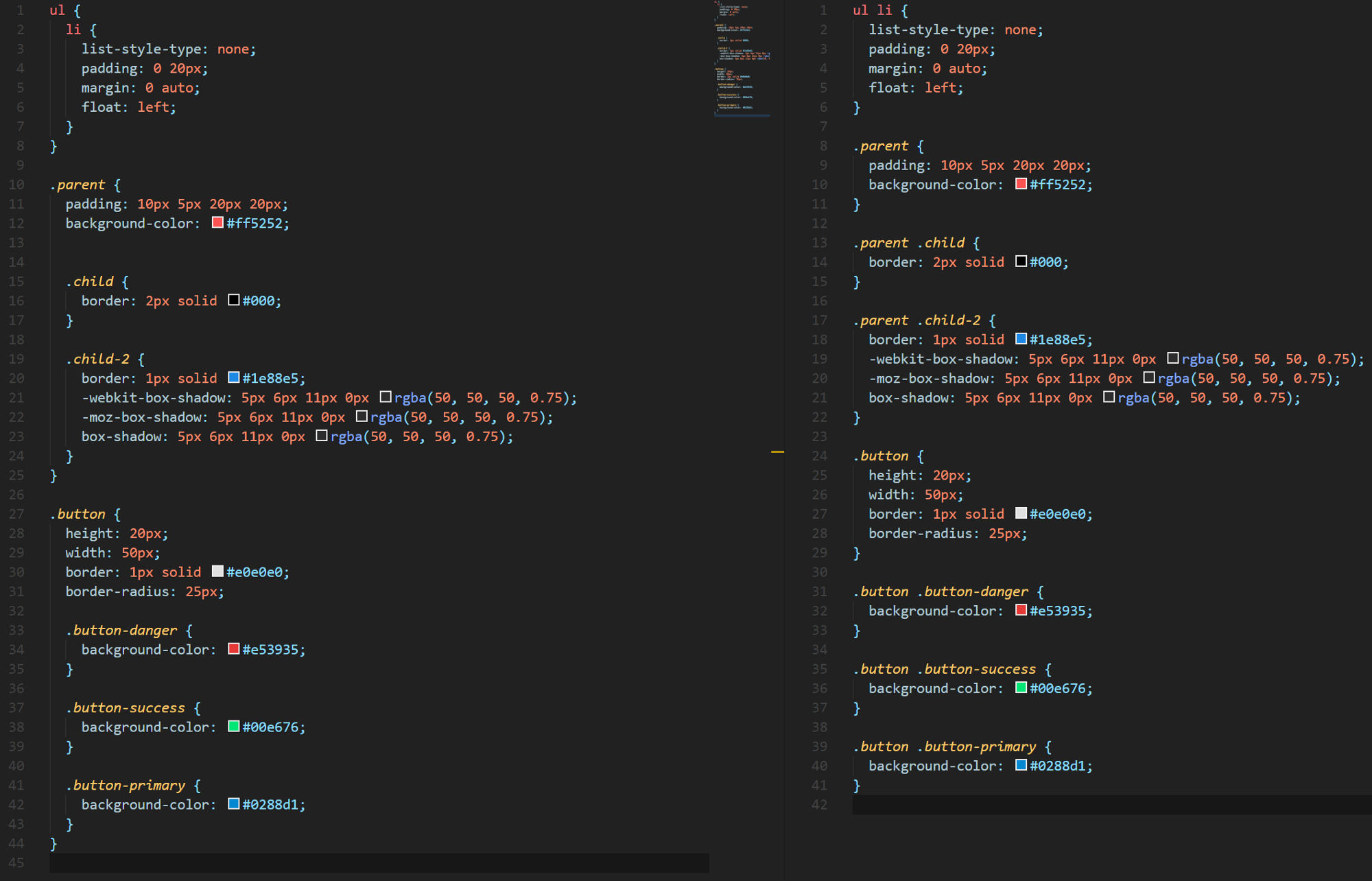 就像选择符连接一样,使用Sass通过将CSS父子关系分组到括号中,自动为您生成CSS的嵌套父子关系。而且显然写出的代码更清爽、简洁。