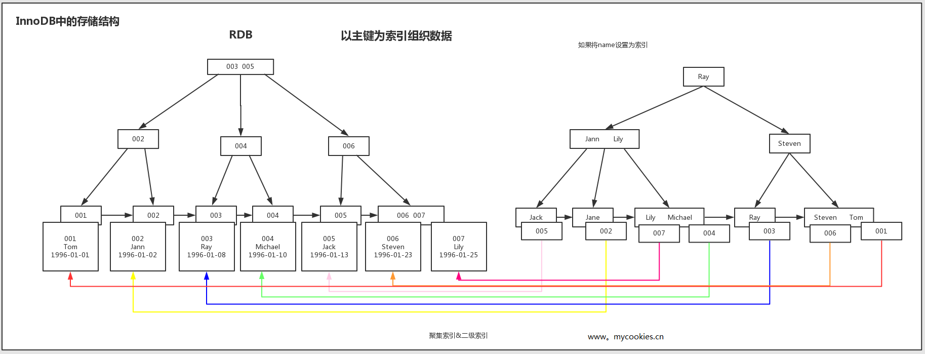 非聚簇索引:不是聚簇索引,就是非聚簇索引(认真脸)。