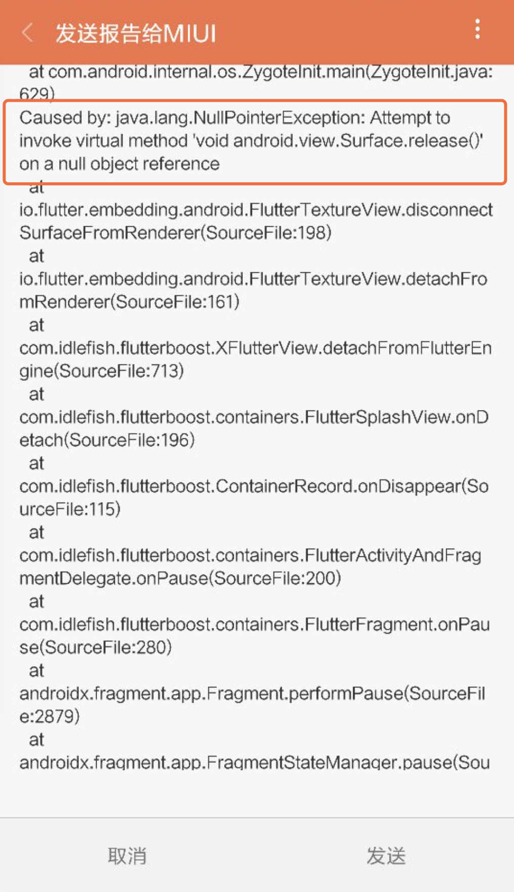 小菜在集成 FlutterBoost 之后,打包 release 包测试时,发现有些手机进退两次应用就会崩溃,小菜也是很崩溃,抓到 Log 提示 Surface 在销毁时空指针;