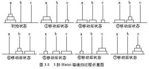 - 每次移动一块碟子,小的只能叠在大的上面