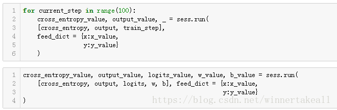 在sess.run()里面循环迭代优化,相当于计算了100次,train_steps