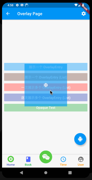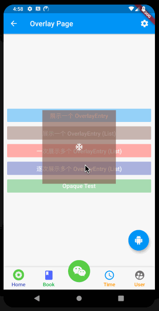 如果需要展示多个 OverEntry 浮层元素时,只能用 insertAll 添加到 Overlay 中,其中默认是以栈方式加入的;其中 insertAll 会一次性的把所有 OverEntry 均加入到 Overlay 中;