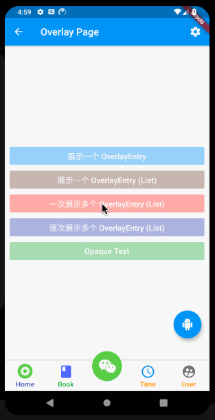 若需要逐次展示多个 OverlayEntry 可以在点击事件中单独加入新的 OverlayEntry;