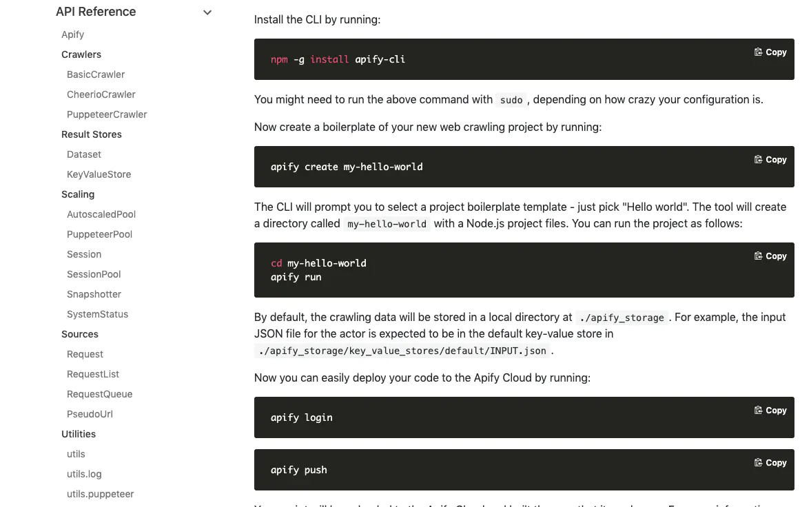 笔者要实现的爬虫主要使用了Apify集成的Puppeteer能力, 如果对Puppeteer不熟悉的可以去官网学习了解, 本文模块会一一列出项目使用的技术框架的文档地址.