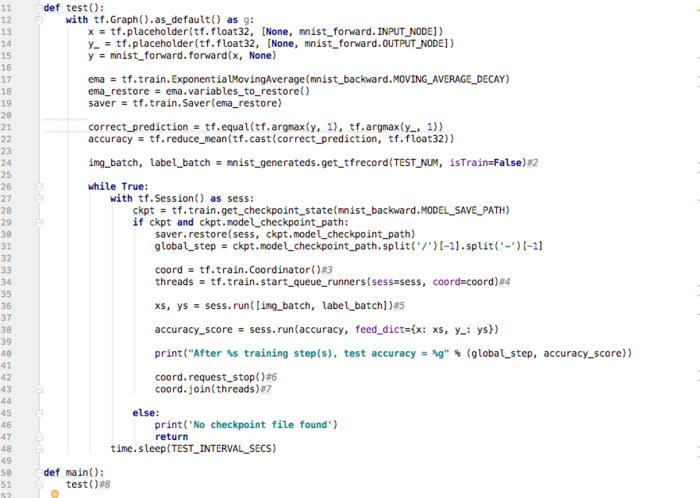 之前我们是使用函数xs,ys=mnist.train.next_batch(BATCH_SIZE),这个函数是mnist已经自己封装好的格式,而现在我们使用xs,ys=sess.run([img_batch,label_batch])来批量获取图片和标签的数据.