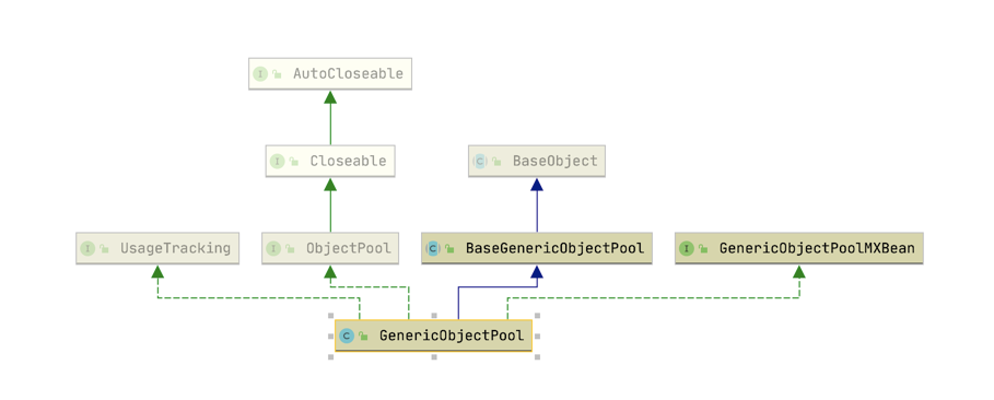 经过上述分析我们知道了对象池承载了对象的生命周期的管理,包括整个对象池中对象数量的控制等逻辑,接下来我们通过GenericObjectPool的源码来分析究竟是如何实现的。