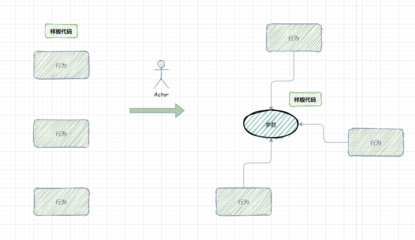 那么给它取了一个名字:行为参数化,在下图中进行了说明(左侧显示了我们现在拥有的;右侧显示了我们想要的),有没有发现样板代码会明显减少🤔