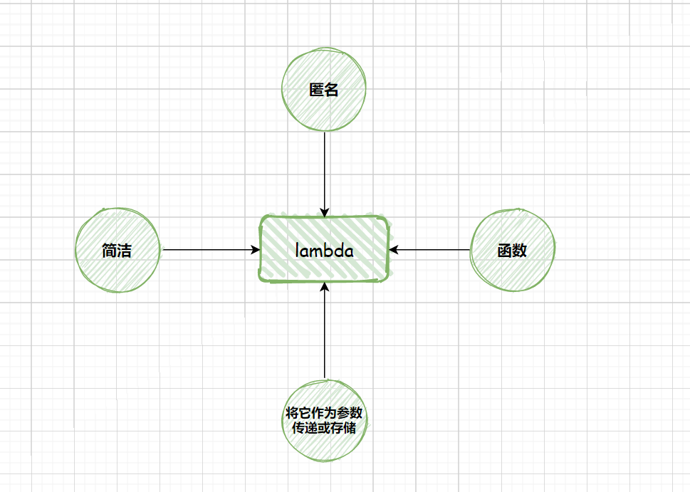 我们可以将 lambda 表达式定义为一种 简洁、可传递的匿名函数,首先我们需要明确 lambda 表达式本质上是一个函数,虽然它不属于某个特定的类,但具备参数列表、函数主体、返回类型,甚至能够抛出异常;其次它是匿名的,lambda 表达式没有具体的函数名称;lambda 表达式可以像参数一样进行传递,从而简化代码的编写。