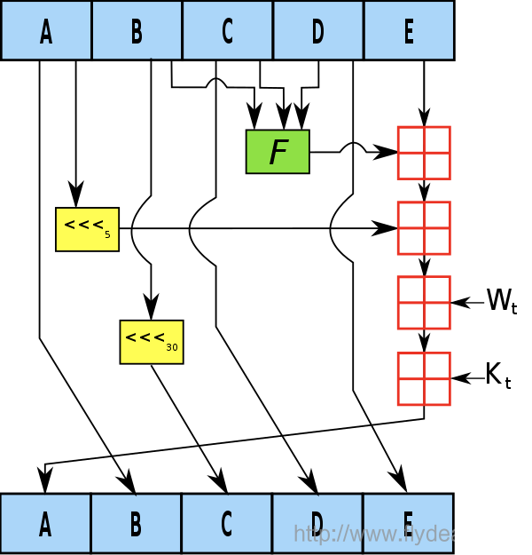 我们先看下SHA1的加密流程图: