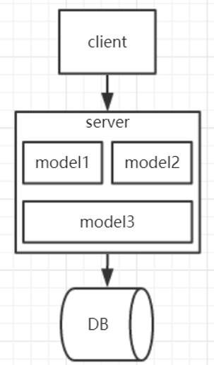 在单体架构里面,客户端可能是cs的,也可能是bs的,服务里面包括所有的模型。所有的请求都包括在server里面,数据库只有一个。实现这个架构更多的是sql语句写好,业务更多的是通过sql来实现的。那个时候hibernate还没有,也没有ORM框架,用这jdbc写的挺爽,当model越来越多的时候,开发效率变的很低,这个项目可能几百个模块,光构建就要花半个小时,我记得公司原来有个项目,那时候才大学毕业那个项目名字叫98系统,就是98年开发完毕的,构建需要半个小时,那时候电脑内存才2g,用的是奔4cpu。其中一个模块报错,需要重新构建一次,都是全部写完看了几遍才敢测试,因为构建太慢了。
