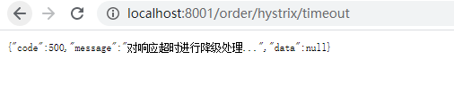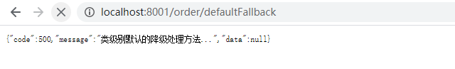 重启consumer-order8001,在浏览器请求 http://localhost:8001/order/defaultFallback,类级别默认降级配置生效。