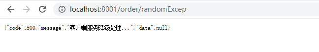 分别启动服务提供者provider-payment9001和服务消费者consumer-order8001,在浏览器请求 http://localhost:8001/order/excep,发现出现级联故障。