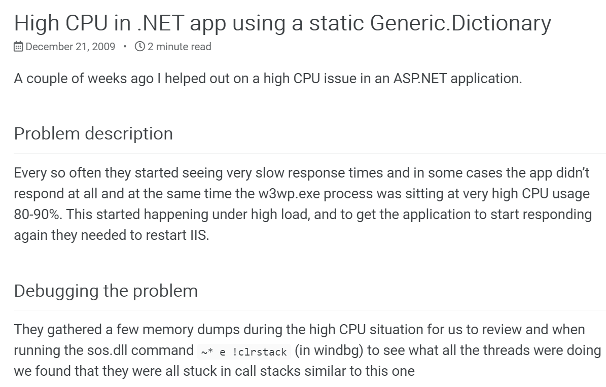 嘿嘿,还真的有这样的案例: High CPU in .NET app using a static Generic.Dictionary ,再截个图。