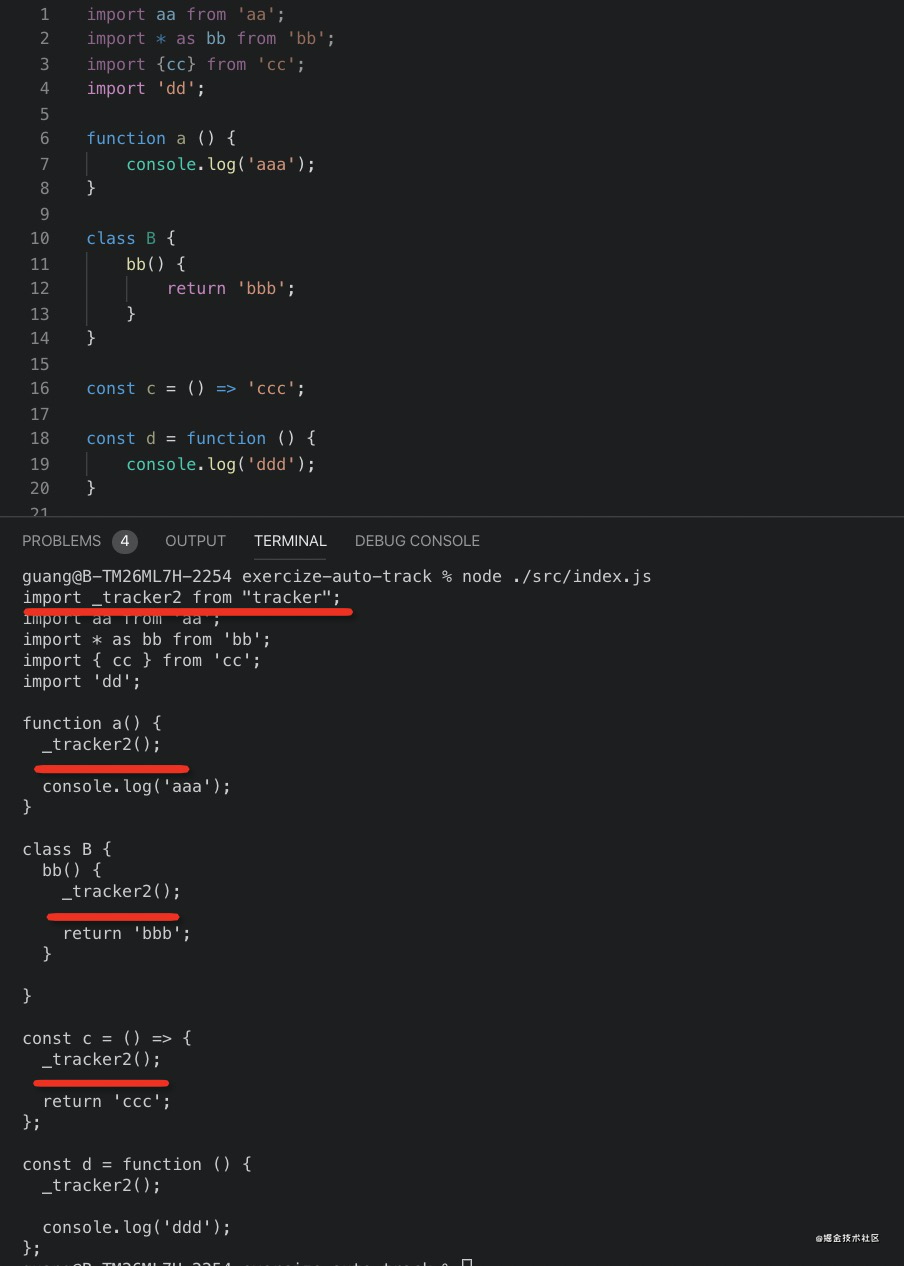 实现思路分为引入 tracker 模块和函数插桩两部分: