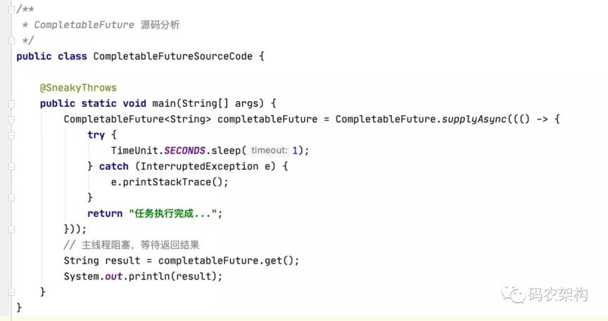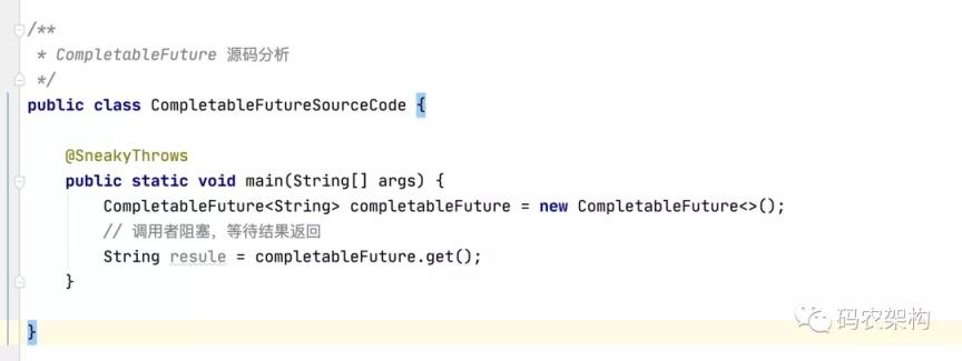 CompletableFuture 实现了 Future 接口,所以它也具有 Future 的特 性:调用 get() 方法会阻塞在那,直到结果返回。