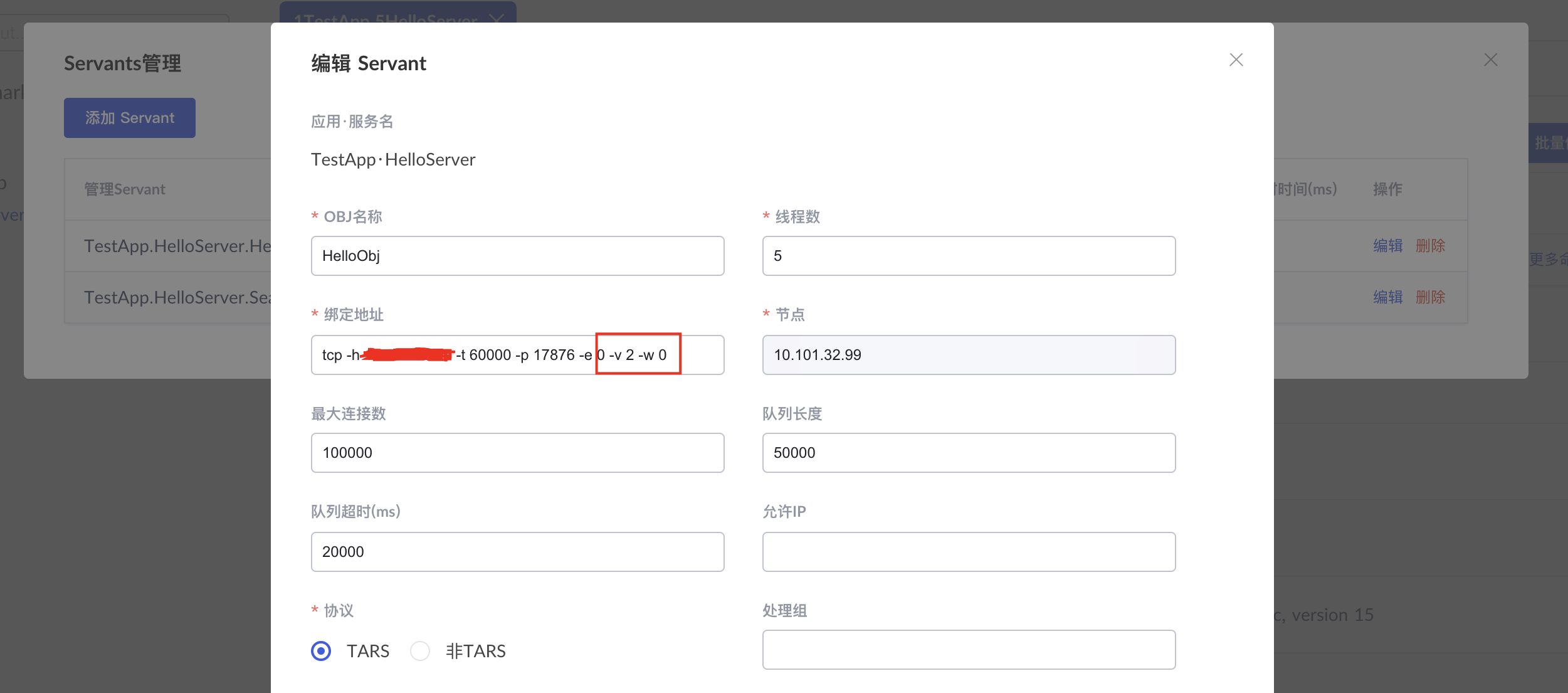 - 在Servant管理处配置-w -v 参数即可支持动态负载均衡,不配置则不启用。