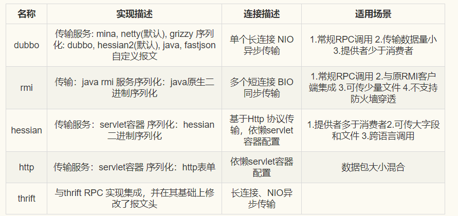 Dubbo框架为了更灵活扩展,其支持多种协议,用户只需要在 provider 应用中 配置即可dubbo:protocol 元素即可。