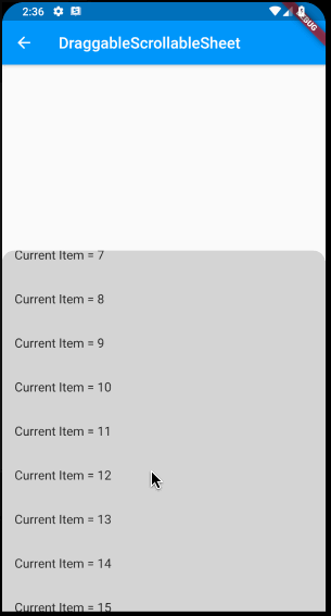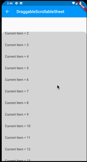 ScrollableWidgetBuilder 构造器作为必选字段,用于在 DraggableScrollableSheet 中显示可滑动的子内容;其中返回内容需为可滑动的 ScrollableWidget,例如 ListView / GridView / SingleChildScrollView 等;