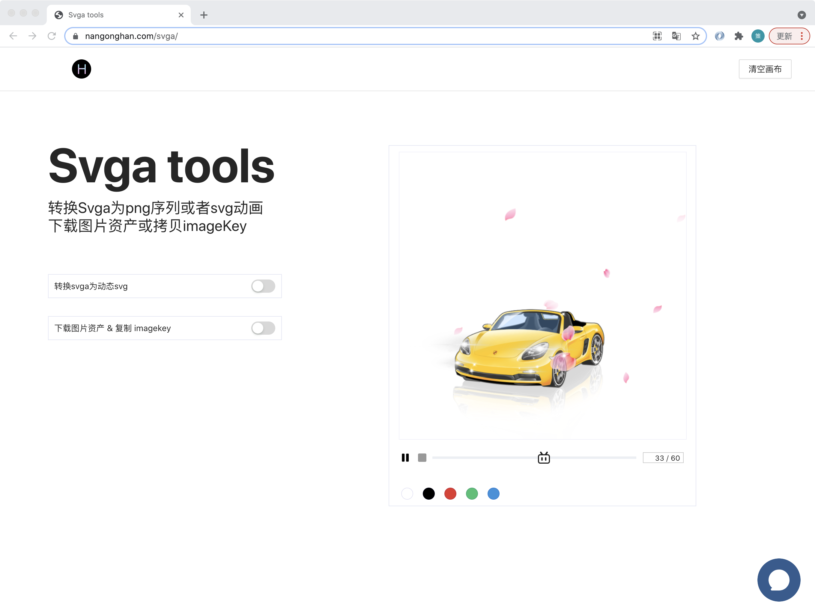 SVGA 提供了在线动画素材预览以及素材元素拆分,还可以将 SVGA 动画转化为 SVG 矢量图元素,非常灵活方便;