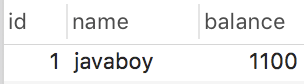 - 在 A 窗口中执行如下 SQL,给 javaboy 这个账户添加 100 块钱,如下: