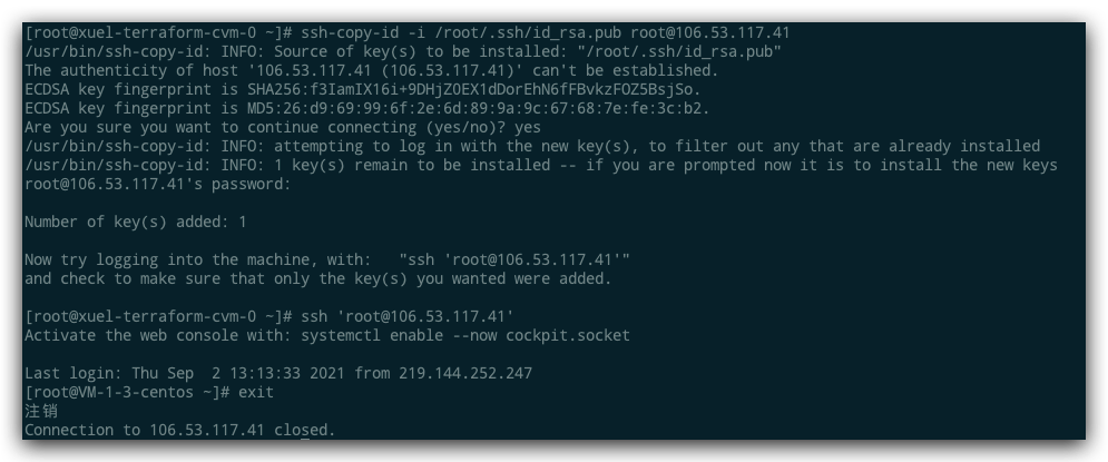 ssh-copy-id -i /root/.ssh/id_rsa.pub [email protected]